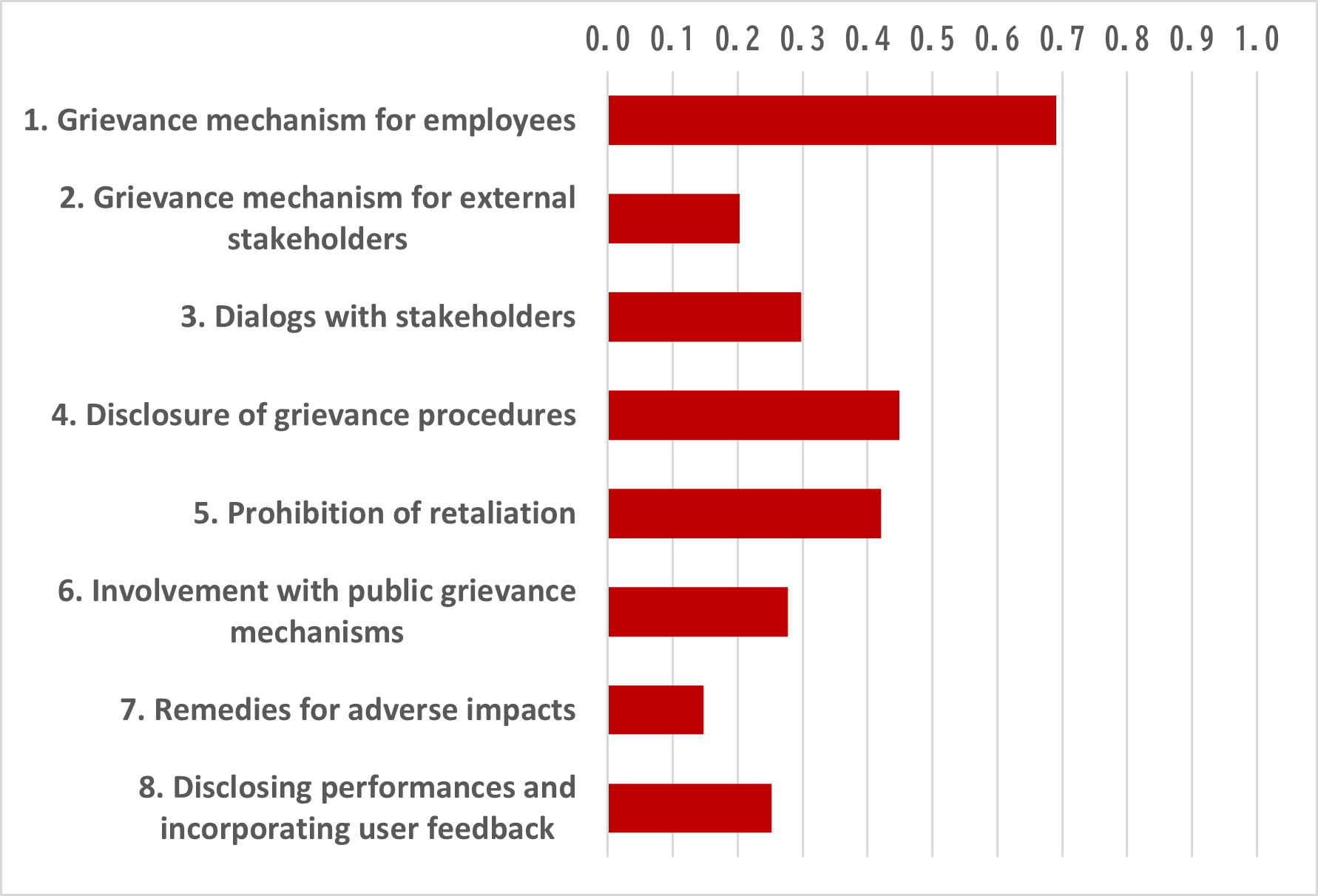 Disclosure of grievance procedures, types of remedies available, and measures to prevent recurrence is insufficient. We will enhance disclosure in accordance with the Guiding Principles.