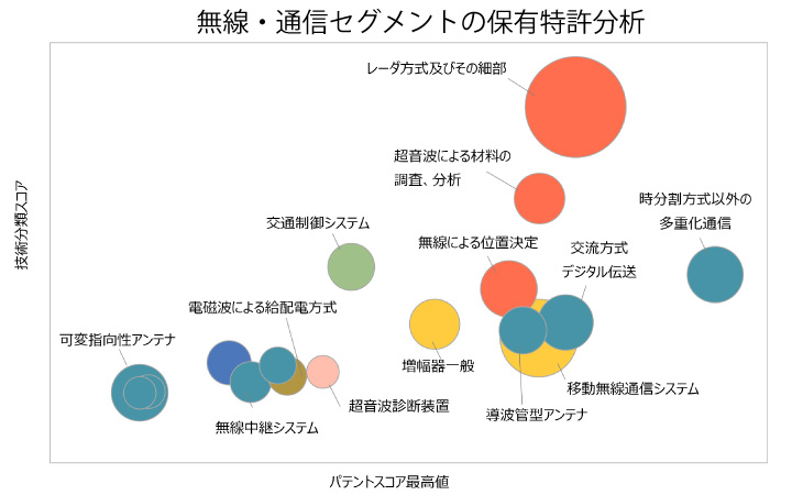 下図は無線・通信セグメントにおける保有特許の分析図を示します。